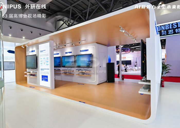 空間效能釋放:360㎡ 大面積采用開放式布局,打破傳統展位的封閉感,讓教育產品展示與互動體驗自然融合;